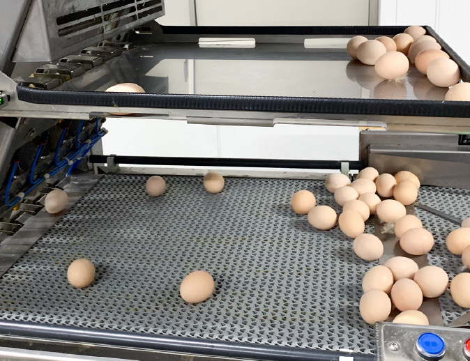 サイズ別、ひび割れ、汚れなどの検査を行い、状態の良い種卵を選別しています。
